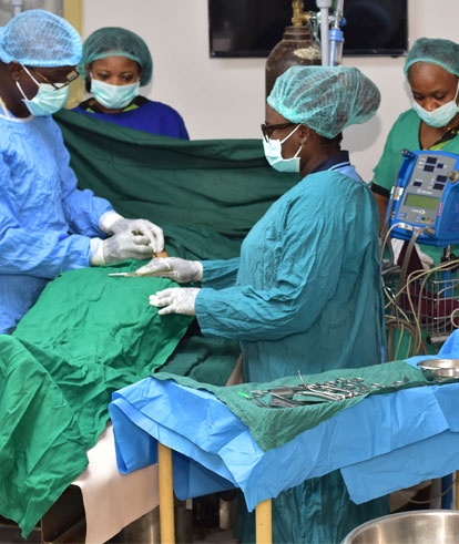 Surgical procedures in all spheres of medical practice have been performed within the hospital fully equipped theatre. Endoscopy(Hysteroscopy, colposcopy and laporoscopy both diagnostic and operative are available.